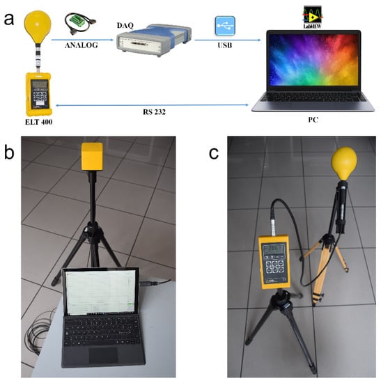 Instrumental chains for GFM measurement: (a) Narda ELT-400 with acquisition system; (b) Narda ELT-400 in a stand-alone version; (c) Narda-PMM EHP-50F.