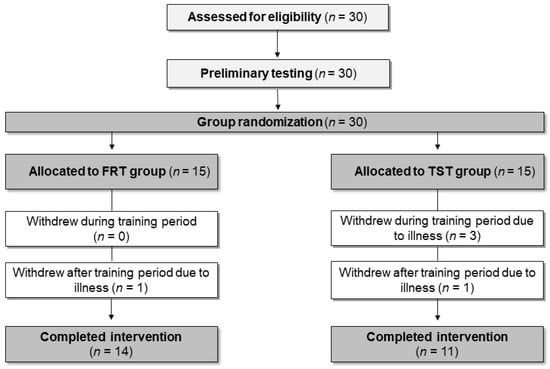 | Variable | FRT (n = 14) | TST (n = 11) | p Value (95% CI) | Effect Size |