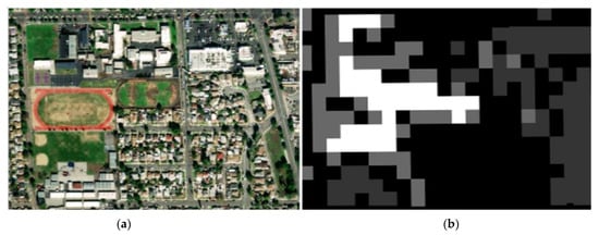 By overlaying these two datasets, it was possible to precisely extract greenspaces within properties designated for a specific land use type. Extensive existing research detected greenspace with land cover data from satellite images [,,,]. The resolution of the land cover data is normally 30 m by 30 m or 10 m by 10 m. For example, the Normalized Difference Vegetation Index (NDVI) data derived from satellite imagery data, whose resolution is typically 30 m by 30 m. The LARIAC data allow delineating the shape and area of tree and greenspaces at a much finer level than the conventional satellite imagery data. For instance, the LARIAC land cover data are about 1914 and 17,222 times finer than 10 m by 10 m and 30 m by 30 m satellite imagery data, respectively (Figure 2).