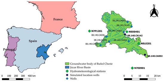 Figure 1 shows the location of the study area, the aquifer of Buñol-Cheste, located on the eastern side of the JRB inside the Valencia Region (Spain). In summer, the average monthly temperature is 22 °C while in winter it is only 6 °C. Average annual precipitation is 350 mm, varying from 280 mm in the southern part of the aquifer to 550 mm in the northern part. In the driest years, the average rainfall is 150 mm/year, while in the wetter years it can reach up to 750 mm/year.