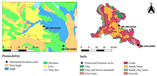 Permeability map (left) and lithological map (right) of the Buñol-Cheste area.