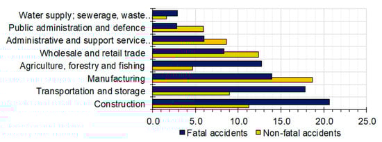 11]. Construction is the sector with the highest number of occupational accidents, which is more than double the average of the other sectors [
