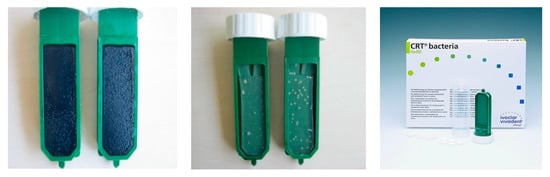 - Mummolo, S.; Marchetti, E.; Giuca, M.R.; Gallusi, G.; Tecco, S.; Gatto, R.; Marzo, G. In-office bacteria test for a microbial monitoring during the conventional and self-ligating orthodontic treatment. Head Face Med. 2013, 9, 7. [Google Scholar] [CrossRef]
