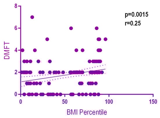 - Bafti, L.S.; Hashemipour, M.A.; Poureslami, H.; Hoseinian, Z. Relationship between Body Mass Index and Tooth Decay in a Population of 3–6-Year-Old Children in Iran. Int. J. Dent. 2015, 2015, 1–5. [Google Scholar] [CrossRef] [PubMed]