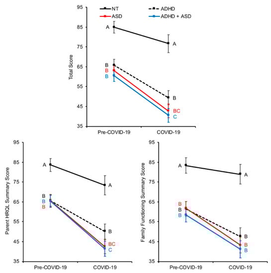 Quality of Life Changes during the COVID-19 Pandemic for Caregivers of Children with ADHD and/or ASD