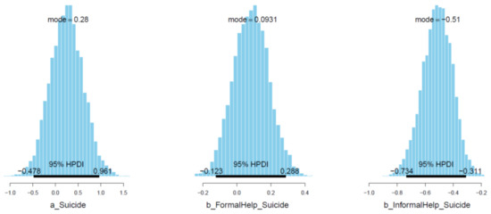 Interestingly, the level of sense of connectedness has a negative impact on the willingness to seek help from doctors and professionals. Moreover, when the factor of being an international student is considered, the sense of connectedness’s effect on formal help-seeking willingness is strengthened (see Table 4). Both effects are moderately reliable, as posterior distributions lie primarily on the negative side (see Figure 14).