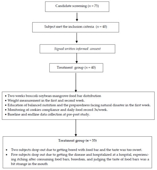 Fatmah, F.; Utomo, S.W.; Lestari, F. Broccoli-Soybean-Mangrove Food Bar as an Emergency Food for Older People during Natural Disaster. Int. J. Environ. Res. Public Health 2021, 18, 3686. https://doi.org/10.3390/ijerph18073686