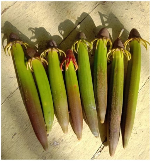 - Ratna, S.; Ratnawaty, F.; Andi, S. Effect of Lindur Mangrove Fruit Flour (Bruguiera gymnorrhiza) Substitution on the Quality of Wet Noodles. J. Pendidik. Teknol. Pertan. 2020, 6, 75–88. [Google Scholar]
