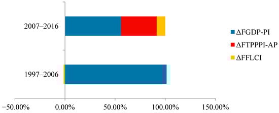 38] to factorise the total fertiliser and pesticide use in China; this method has been used widely because of its many excellent features. The LMDI method can not only eliminate the unexplained residual terms but also deal with the problem of zero values in the data, and it has desirable characteristics such as a simple calculation process and intuitive decomposition results. The LMDI method can make the model results more convincing. By compiling the existing studies in the literature (see