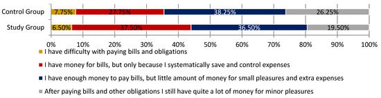 Respondents were then requested to assess their financial status. Participants in the study cohort frequently claimed that they have enough financial sources (money) to pay the bills (accounts). However, they believe this is only due to regularly saving money and controlling their expenses (37.50%) (Figure 4).
