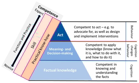 This means that competent health workers should be able to integrate complex CECH knowledge and skills across environment, infrastructure, exposures, cultures, behaviours and health in many different settings from local to global. Depending on the level at which the health worker functions, these integrations will range from lower cognitive levels of ‘knowledge’ (knowing about things) to the increasingly challenging making executive decisions at ‘higher’ levels (apply and act).