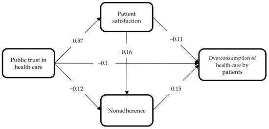 The results of the study also proved that public trust in the health system constituted a special construct in the model being described herein, since it influenced both directly and indirectly how medical services were used (Table 7). The negative impact of public trust in the health system on overconsumption of health care by patients was reinforced by patient satisfaction. This means that the coexistence of both these factors at different levels of the system, i.e., trust on a macroscale and patient satisfaction on a microscale, were definitely more effective at preventing patients from overusing medical services. Importantly, public trust in the health system, thanks to coexisting with patient satisfaction, also significantly reduced patient non-adherence.