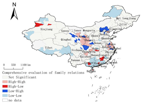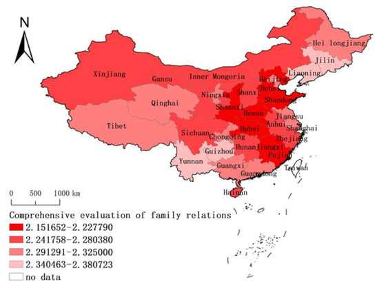 Spatial distribution characteristics of the comprehensive family relationship assessment.