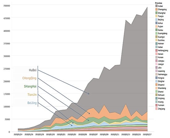 The changes in the number of new COVID-19 cases in various provinces of China from January 24 to February 17.