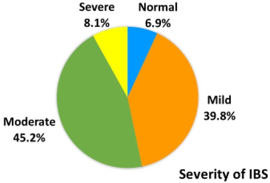 In fact, a study indicated that functional gastrointestinal symptoms are common in young adults regarded as a negative response to stress []. Also, patients with IBS are often reported to have depression, anxiety, or physical discomfort during medical consultation []. Moreover, their quality of life (QOL) is severely affected, but some studies revealed that poorer QOL is a risk factor of IBS [,]. Accordingly, IBS negatively influences patients physically and mentally. Many studies on IBS have focused on adults [,]. The IBS prevalence rate among university students in China ranges between 7.85% and 10.4% [,]. Those with IBS report higher degrees of anxiety and depression than did those without IBS []. Nevertheless, in Japan the prevalence of IBS was defined by various criteria ranges 19%–26%, respectively [,]. These above findings suggest that the prevalence of IBS is very high in young adults.