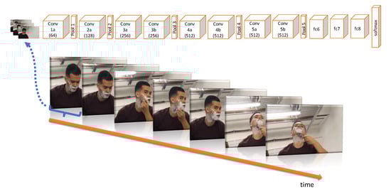 - Tran, D.; Bourdev, L.; Fergus, R.; Torresani, L.; Paluri, M. Learning Spatiotemporal Features with 3D Convolutional Networks. In Proceedings of the ICCV 2015, Santiago, Chile, 7–13 December 2015; pp. 4489–4497. [Google Scholar]