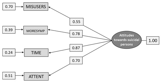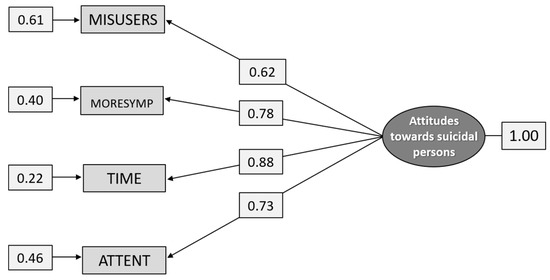 Path diagram: CFA analysis of the construct Attitudes toward suicidal persons (n = 1.271).