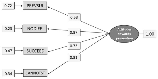 Path diagram: CFA analysis of the construct Attitudes toward prevention (n = 586).
