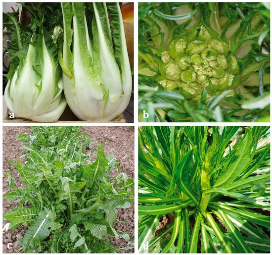 Chicory local varieties described in this paper. (a) “Bianca”; (b) “Galatina”; (c) “Leccese”; (d) “Otranto”.