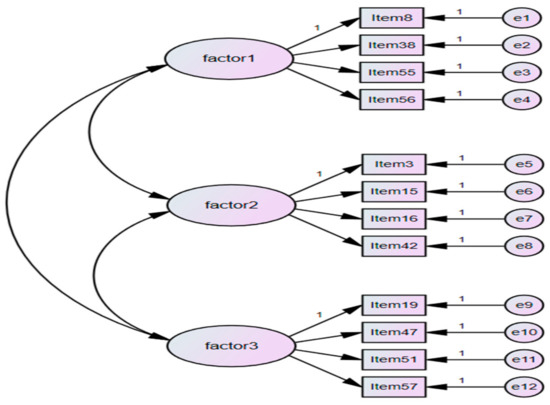 As a result of the first factor analysis, three factors were extracted. Thirteen items with an absolute value of factor load less than 0.60 were deleted and one item with factor complexity was included in the other items to measure similar concepts. The first 12 items were selected.
