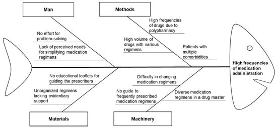 A multidisciplinary team was recruited in December 2016, comprising two pharmacists, four attending physicians (one each from the departments of gastroenterology, nephrology, endocrinology, and neurology), two ward nurses, and a project manager in the department of medical informatics. The team developed an intervention plan and created a fishbone diagram using the 4 M’s approach to outline the potential barriers to simplifying the medication regimens in January 2017 (Figure 2). Based on their analysis, two CPOE enhancements for prescriber-focused medication simplification were proposed as interventions.
