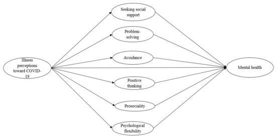 - Chong, Y.Y.; Chien, W.; Cheng, H.Y.; Kassianos, A.; Gloster, A.; Karekla, M. Can psychological flexibility and prosociality mitigate illness perceptions toward COVID-19 on mental health? A cross-sectional study among Hong Kong adults. Glob. Health 2021, 17, 43. [Google Scholar] [CrossRef]