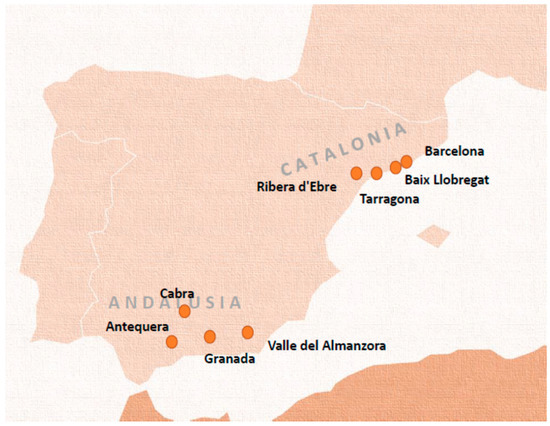 The ethnographies were performed between May 2016 and September 2017 in selected locations from the study regions: a municipality of Baix Llobregat; a neighborhood of the city of Tarragona; two municipalities in Ribera d’Ebre and two municipalities in the Almanzora Valley (Figure 2). With the granting of the second funding, the study was expanded with eight focus groups being held between October 2018 and July 2019.