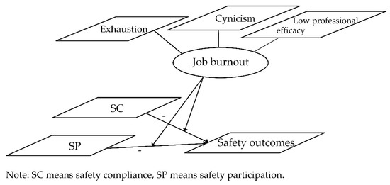 Furthermore, some strain factors may impact the interaction between SC, SP and safety outcomes. The causes that undermine individuals’ energetic resources to reach work goals are strain factors [6,7]. Among strain factors, job burnout is a pure example and is the most representative psychological syndrome associated with work. It has been discussed widely in various fields, and most frontline workers suffer from it [8,9]. Thus, when investigating the mechanisms through which SC and SP affect safety outcomes, the role of burnout is of high interest and significance. However, research has barely explored the interaction between SC, SP, safety outcomes and job burnout.