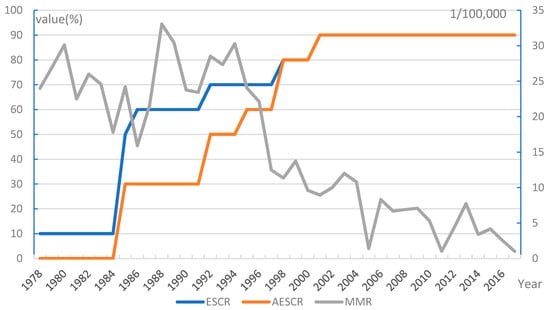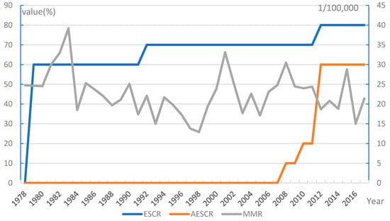 - Huang, C.M.; Fan, L.C.; Luo, Q.; Cao, X. Relationship between the Maternal Mortality and Maternal Health Care Services in Hainan Province, 2003–2014. Mod. Prev. Med. 2016, 43, 1600–1602. [Google Scholar]