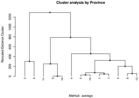 By employing the hierarchical agglomerative cluster method based on the average-linkage approach, we initially classified the regions of Saudi Arabia and China based on the infection rates. The division into groups facilitated the consequent clustering process based on the population density in each of the aforementioned regions. The study population of 30 administrative regions in China was divided into groups as displayed on the dendrogram (see Figure 1). The first group includes Shanghai with estimated population density of 3814 inhabitants per sq. km and Covid-19 cases of 6.32 per 100,000. Tianjin and Beijing comprise the second group while the remaining regions form several smaller clusters corresponding to their estimated population density and Covid-19 cases. In the case of Saudi Arabia, 13 emirates were divided into multiple groups that included Eastern Province and Al Madinah Al Munawwarah, Ha’il and Najran, and others (see Figure 2). The hierarchical clustering did not reveal any significant insights after classifying the emirates by the population density and Covi-19 cases.