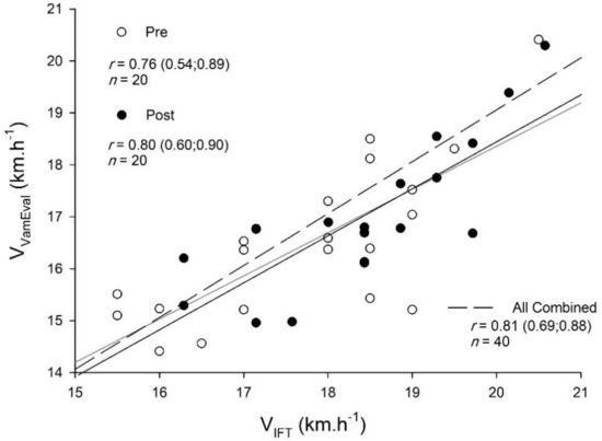 Very large relationships were observed between changes VIFT and VVameval for pre-, post- and pooled-data (Figure 1).