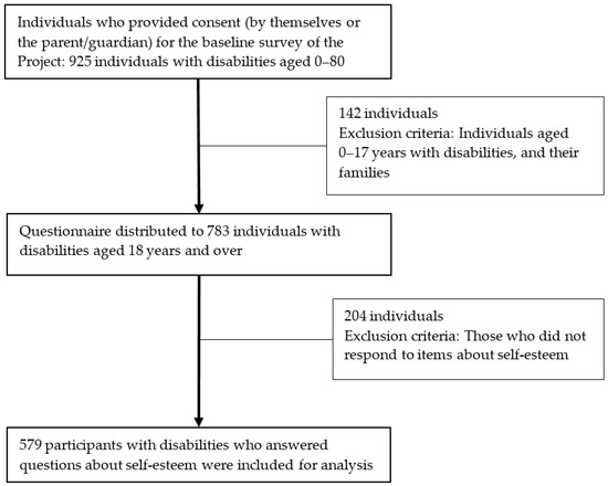 APA StyleYamada, T., Sakisaka, K., Bermúdez Rodríguez, L. N., & Yamaoka, K. (2021). Self-Esteem, Socioeconomic Status and Social Participation of Persons with Disabilities Living in Areas Affected by Armed Conflict in Colombia. International Journal of Environmental Research and Public Health, 18(8), 4328. https://doi.org/10.3390/ijerph18084328