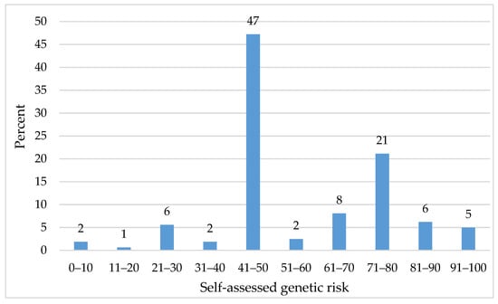 Self-assessed genetic risk of healthy women (n = 161). Note: The y-axis maximum was truncated.