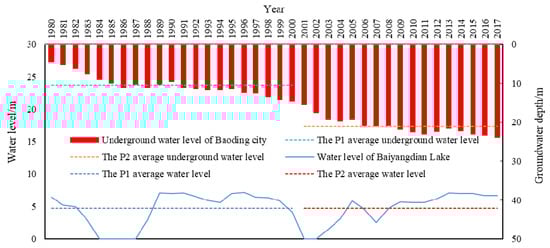 Changes in the groundwater level and Baiyangdian Lake water level in Baoding City from 1980 to 2017 [,].