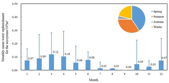 Monthly mean distribution corresponding to 38 years of water replenishment for the ecosystem in Baiyangdian Lake from 1980 to 2017 [,,,,].