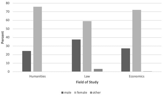 Participants’ proportion of women was 75.8 percent in humanities, 59 percent in law, and 60.9 percent in economics. Reference proportion of female students in the evaluated year for sampled faculties was 76.59 percent in humanities, 60.3 percent in law, and 42.67 percent in economics [