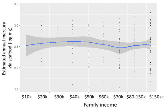 Contrary to our hypothesis, our estimate of the annual mercury intake via seafood was not related to income (Figure 3).
