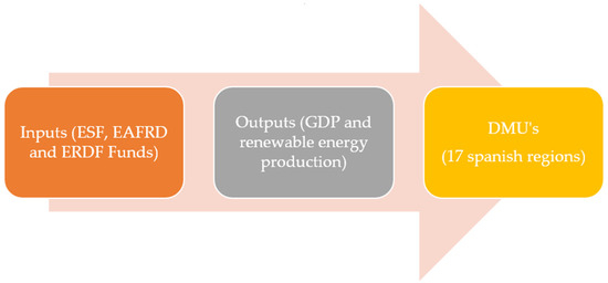 This article has analyzed, at regional level, the efficiency in the use of European funds as an instrument to improve the use of renewable sources of energy for the 2014–2020 period. For this, a non-parametric DEA model was used, in which the input variables have been the EAFRD, ERDF, and ESF funds, and the output variables were GDP and the Production of renewable energy.