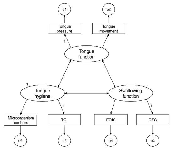 Structural equation modeling (SEM) analyzes the structure of covariance between such observed variables and compares concepts that cannot be directly observed, such as tongue movement function, to examine the structure of causal relationships. Until now, SEM analysis for the elderly has been dominated by reports on oral-related quality of life and the difference between subjective and objective evaluations related to oral hygiene [17,18,19,20], and no reports on oral hygiene status and oral function are available to the best of our knowledge. Therefore, the purpose of this study was to clarify the relationship between tongue hygiene and tongue function using SEM analysis.