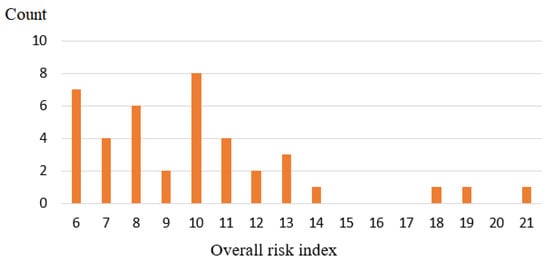 Figure 4 shows the distribution of the 40 drivers’ driving risk indices. The output range for the overall driving risk index was between 6 and 21.
