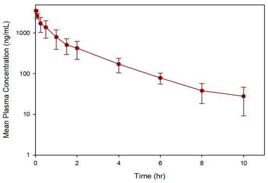 The plasma concentration data are presented as the mean value with standard deviation (SD). SigmaPlot (SYSTAT Software, San Jose, CA, USA) was used for the curve fitting.
