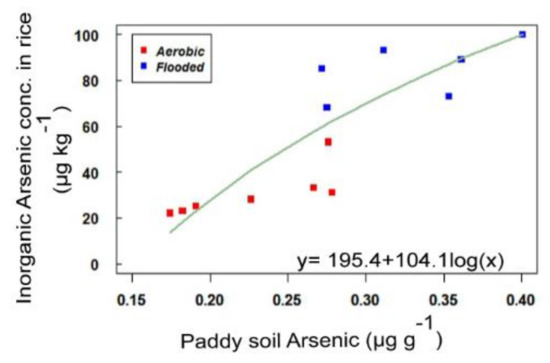 - Arao, T.; Kawasaki, A.; Baba, K.; Mori, S.; Matsumoto, S. Effects of water management on cadmium and arsenic accumulation and dimethylarsinic acid concentrations in Japanese rice. Environ. Sci. Technol. 2009, 43, 9361–9367. [Google Scholar] [CrossRef]