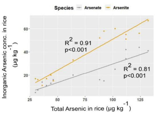 - Meharg, A.A.; Williams, P.N.; Adomako, E.; Lawgali, Y.Y.; Deacon, C.; Villada, A.; Cambell, R.C.J.; Sun, G.; Zhu, Y.G.; Feldmann, J.; et al. Geographical Variation in Total and Inorganic Arsenic Content of Polished (White) Rice. Environ. Sci. Technol. 2009, 43, 1612–1617. [Google Scholar] [CrossRef]