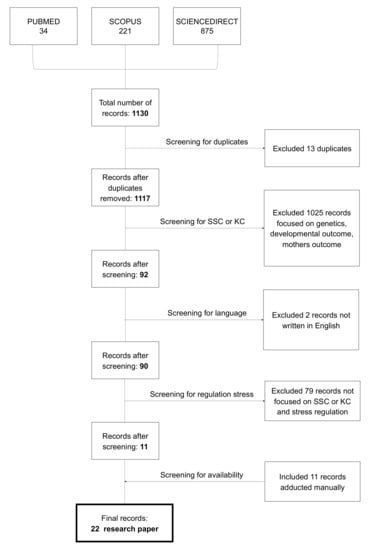 Articles that did not meet the criteria were removed from the review. The primary reason for elimination was the lack of focus on KC or SSC for stress regulation, as seen in Figure 1.
