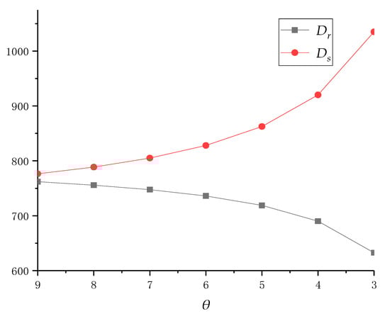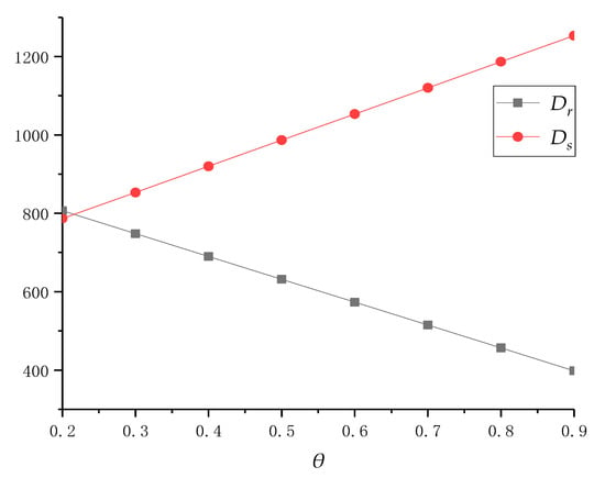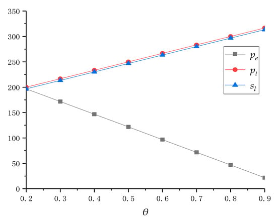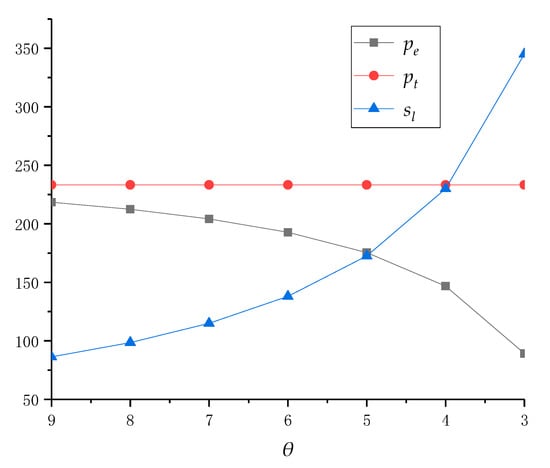 In summary, ∂ pe/∂θ is always less than 0, so the optimal online recycling price pe of the system is negatively correlated with θ.
