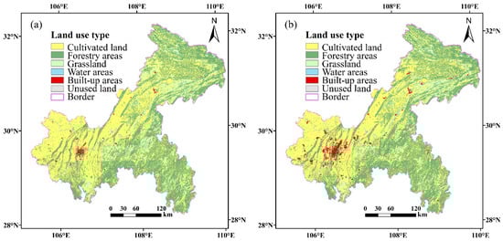 Land use types in Chongqing in 2005 (a) and 2015 (b).