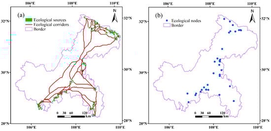 Potential ecological corridor (a) and ecological node distribution (b) in Chongqing.