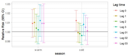 | Lag 02 | 1.006 (0.995–1.017) | 1.004 (0.987–1.021) | 1.007 (0.991–1.023) | 0.994 (0.979–1.009) |