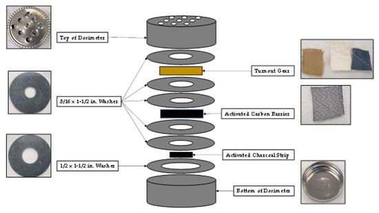 Diagram of passive sampling dosimeter containing turnout gear, ACL, and activated charcoal strip.
