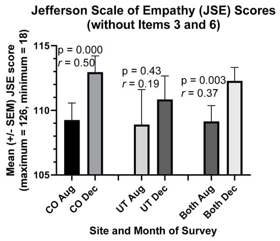 3.2. Improvements in Students’ RC and Empathy Scores in 2020